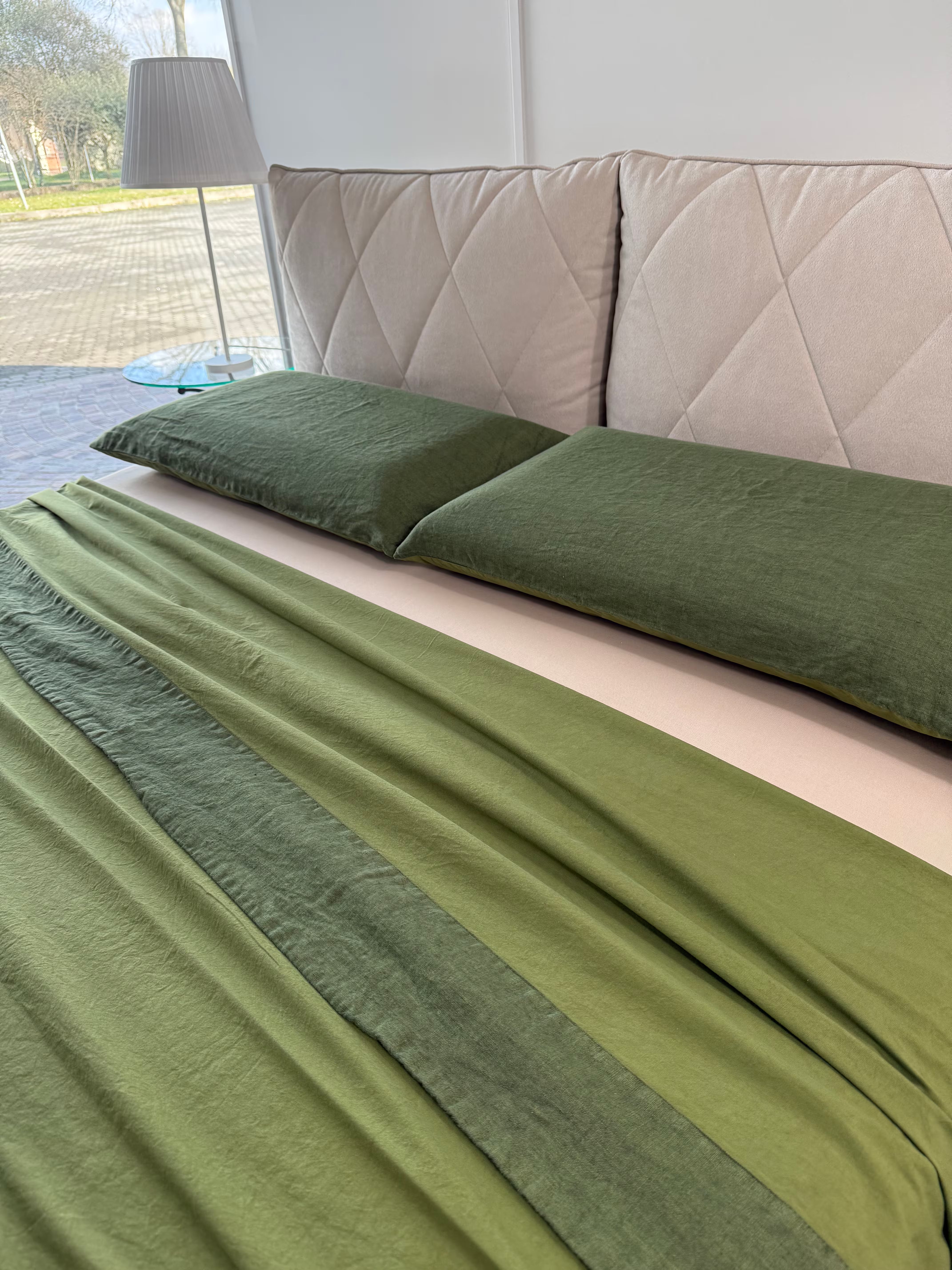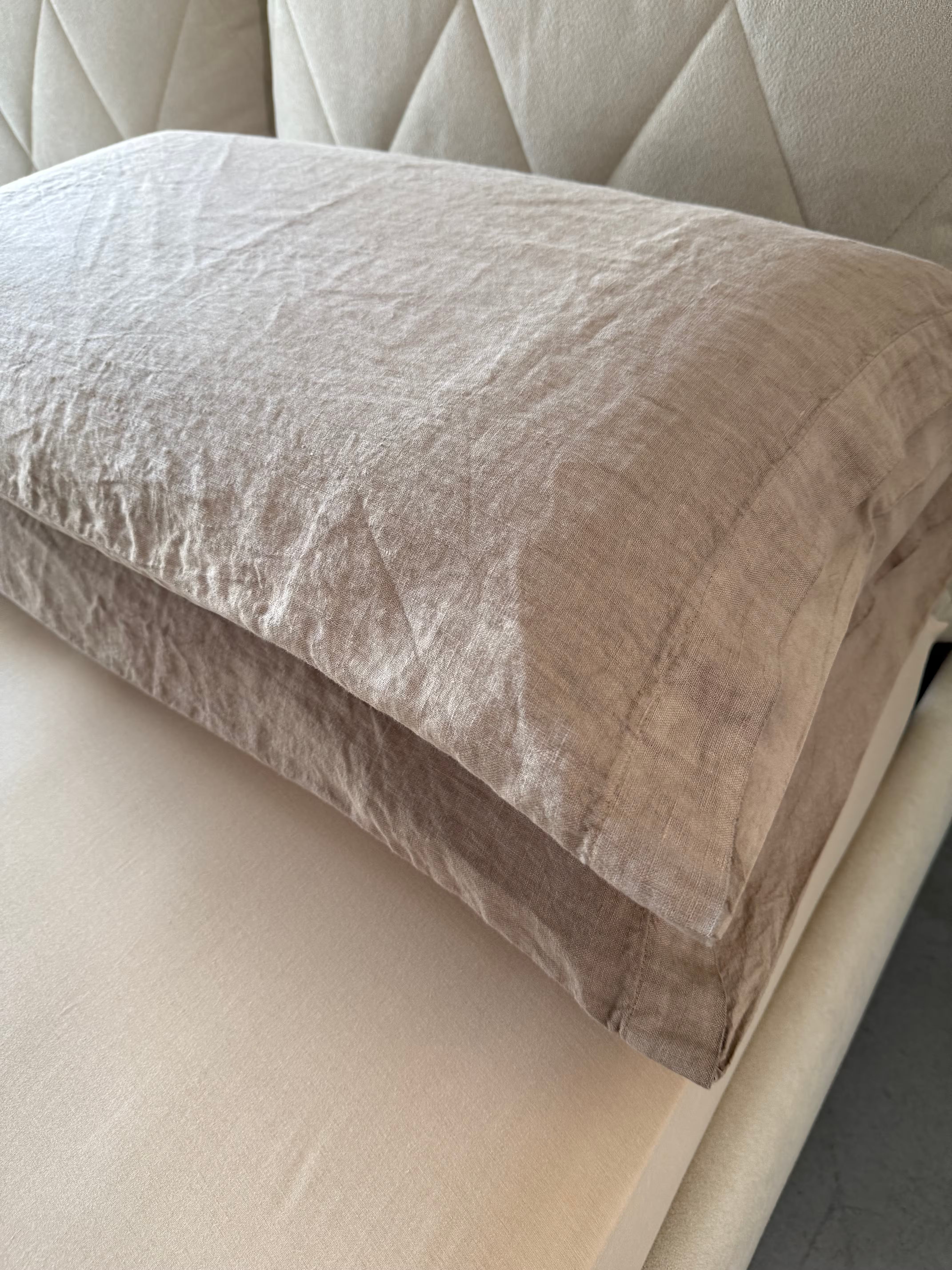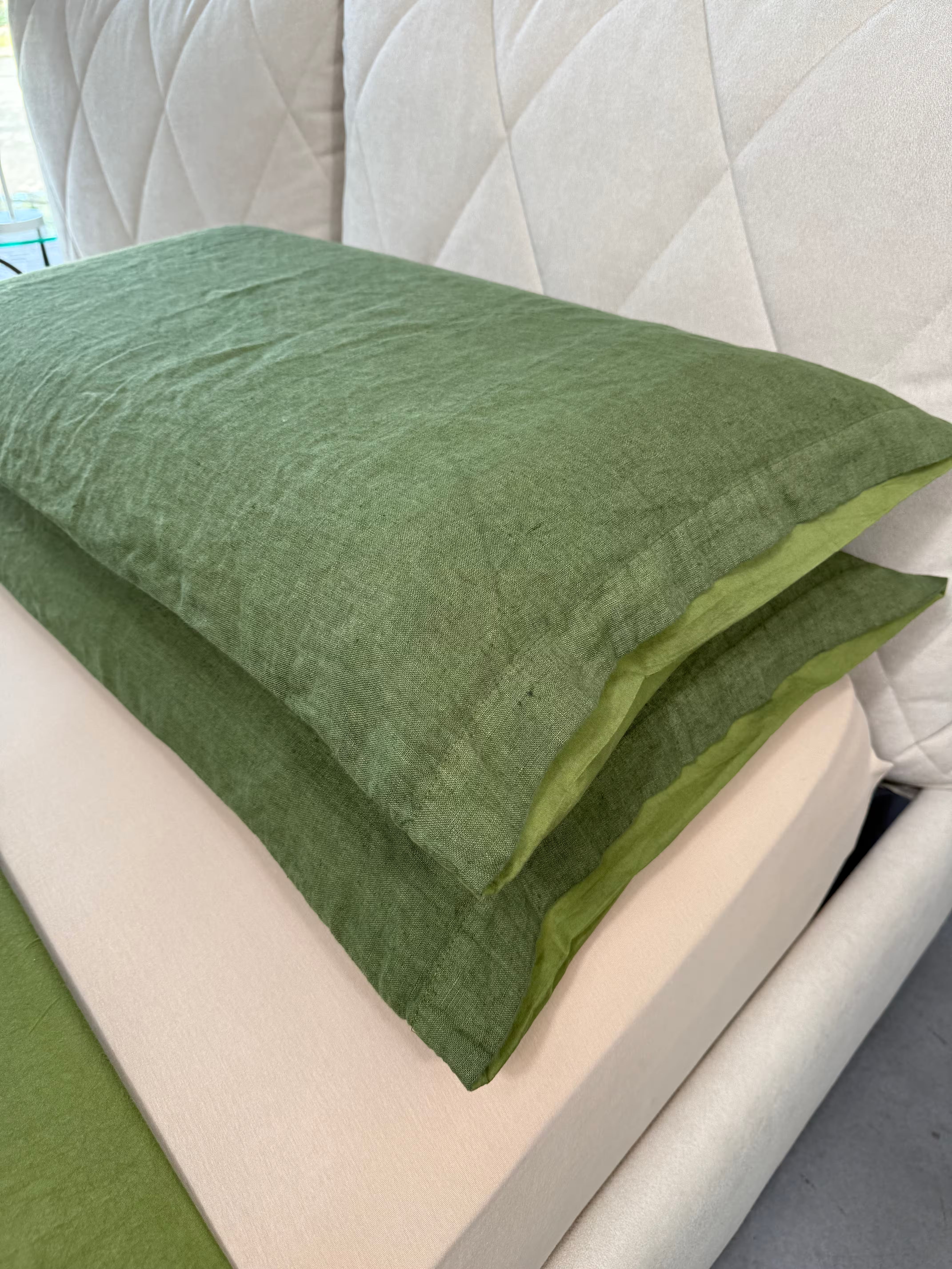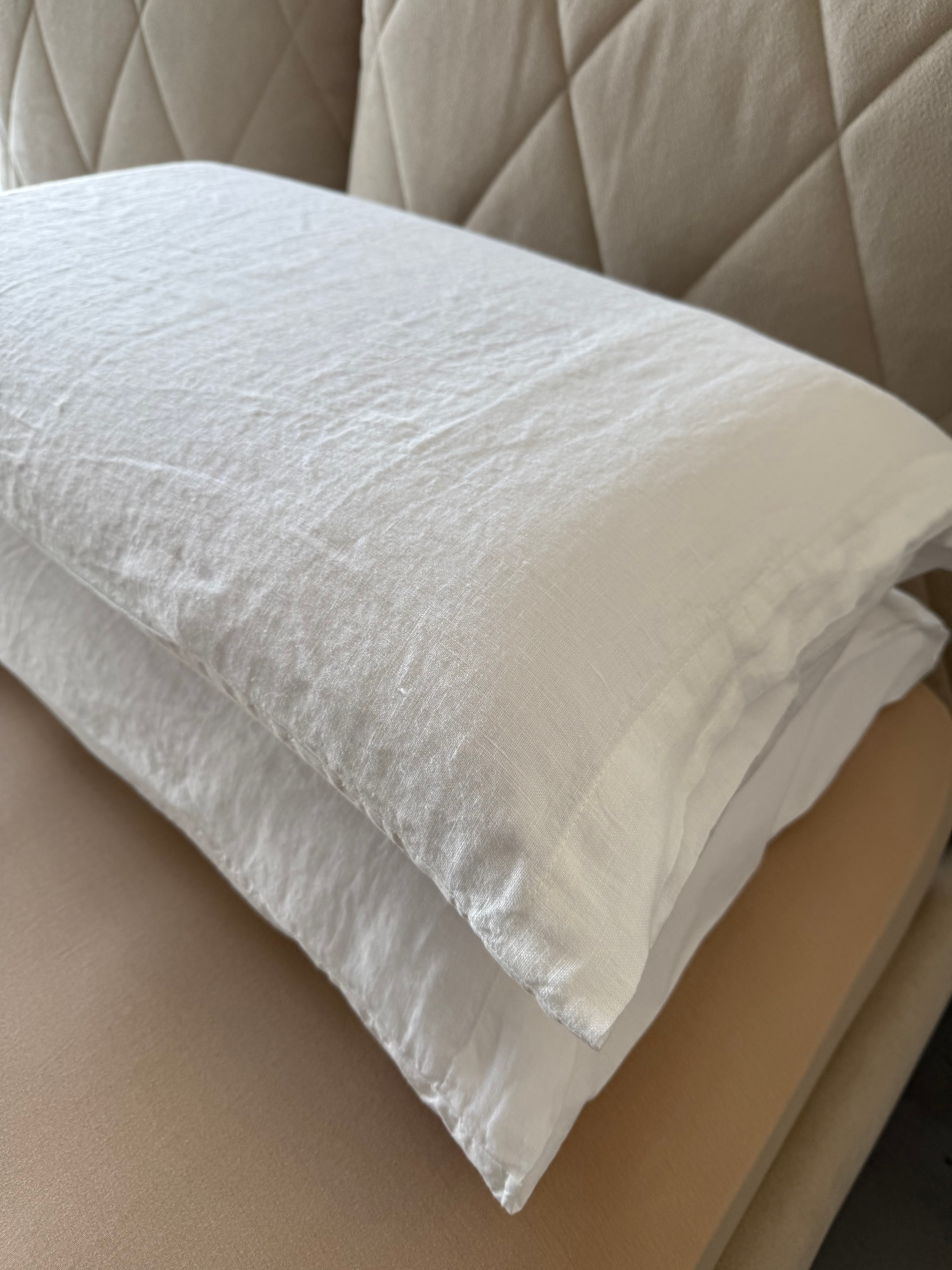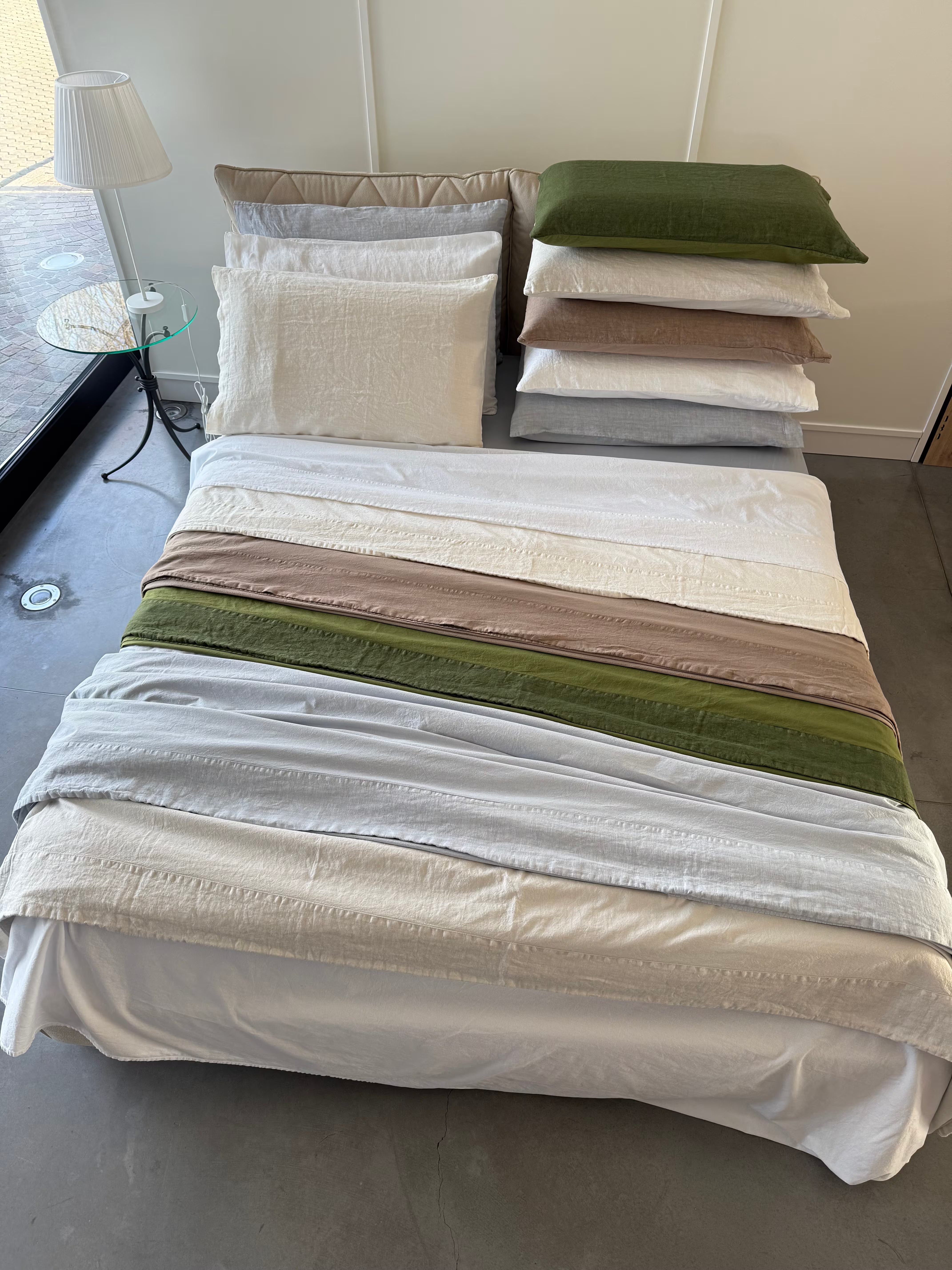 Raffinato, elegante e pratico è il nostro lenzuolo in cotone stonewashed Elegance con bordo in puro Lino, federe un lato puro Lino ed un lato cotone stonewashed.