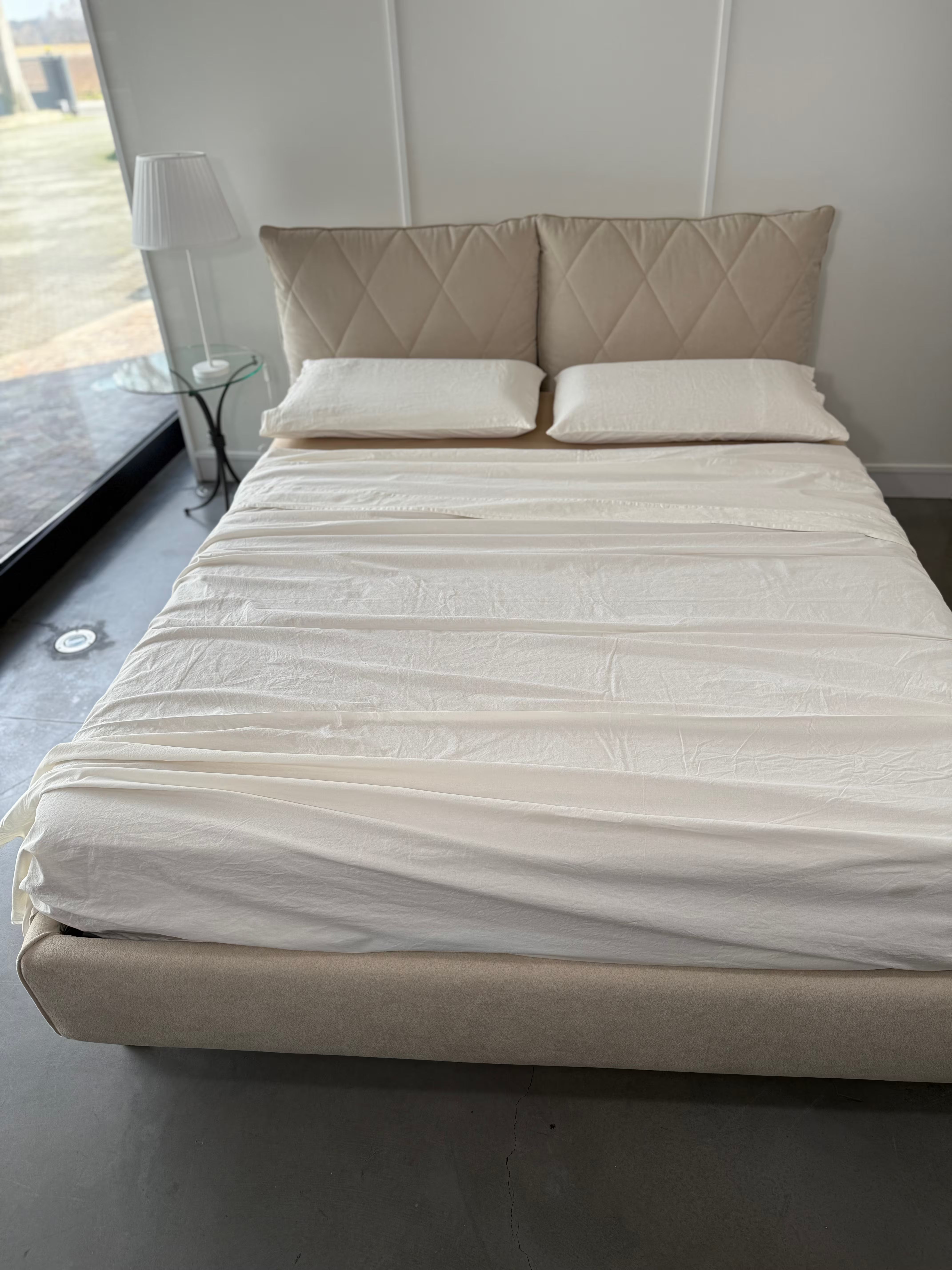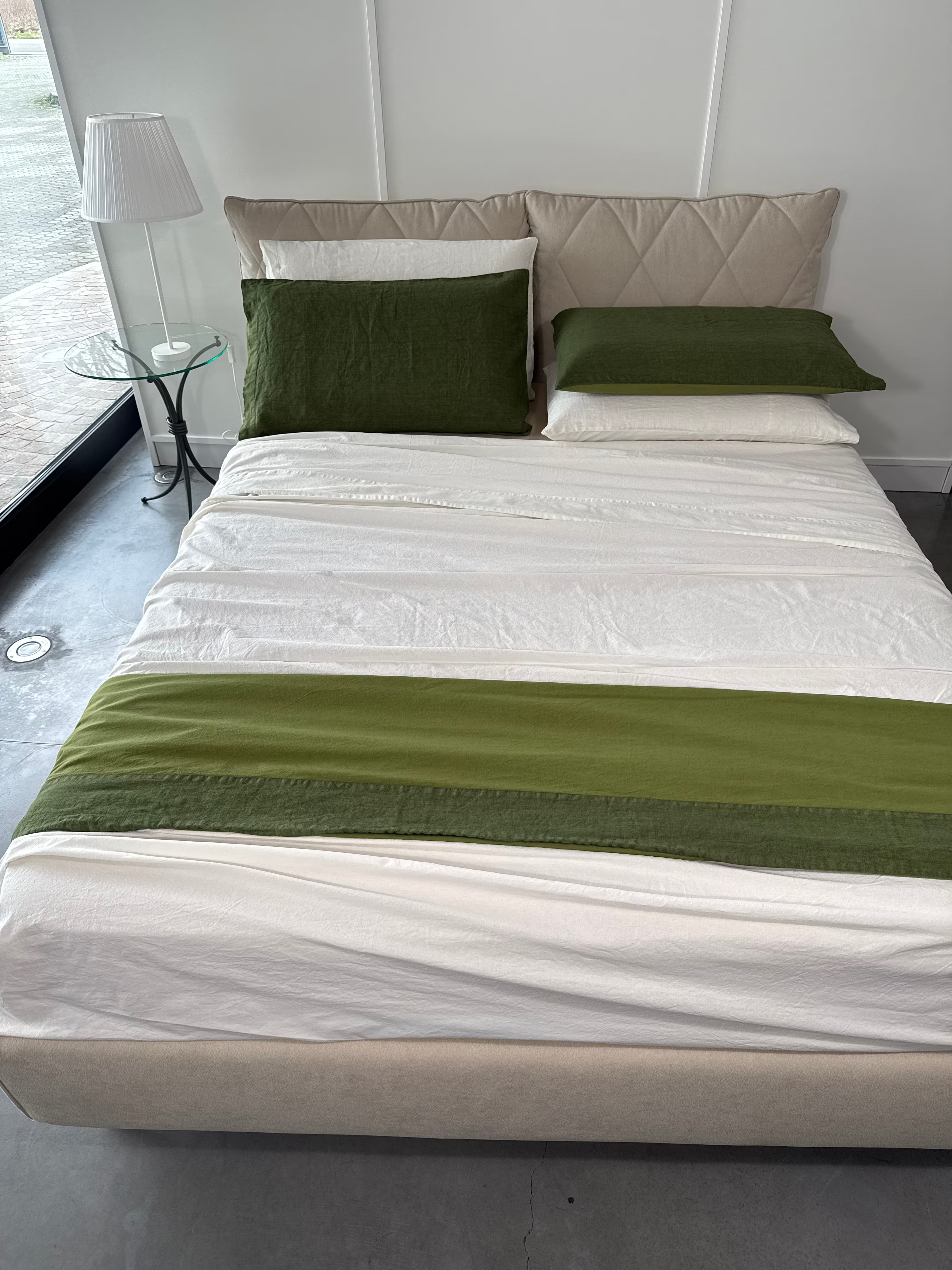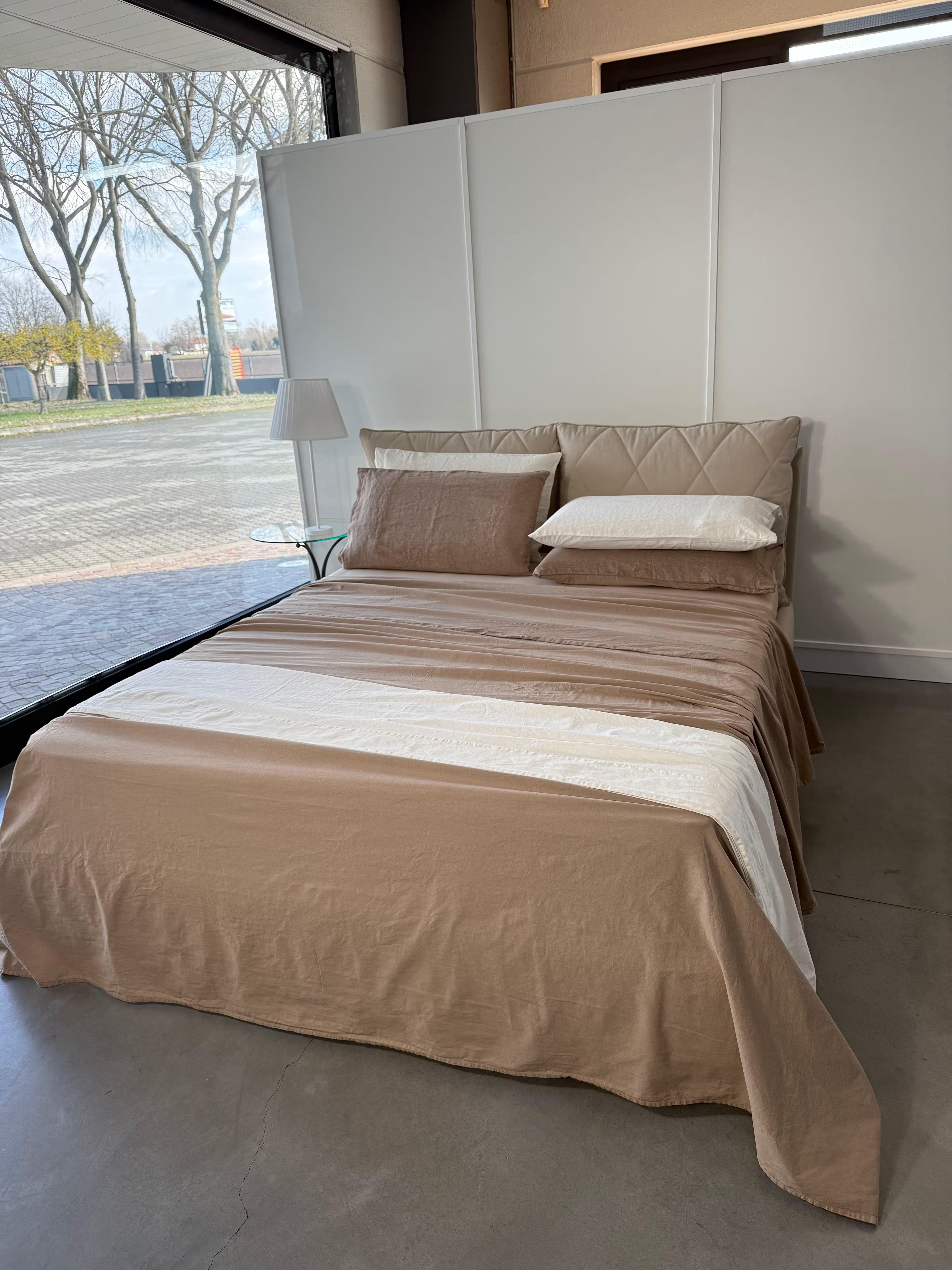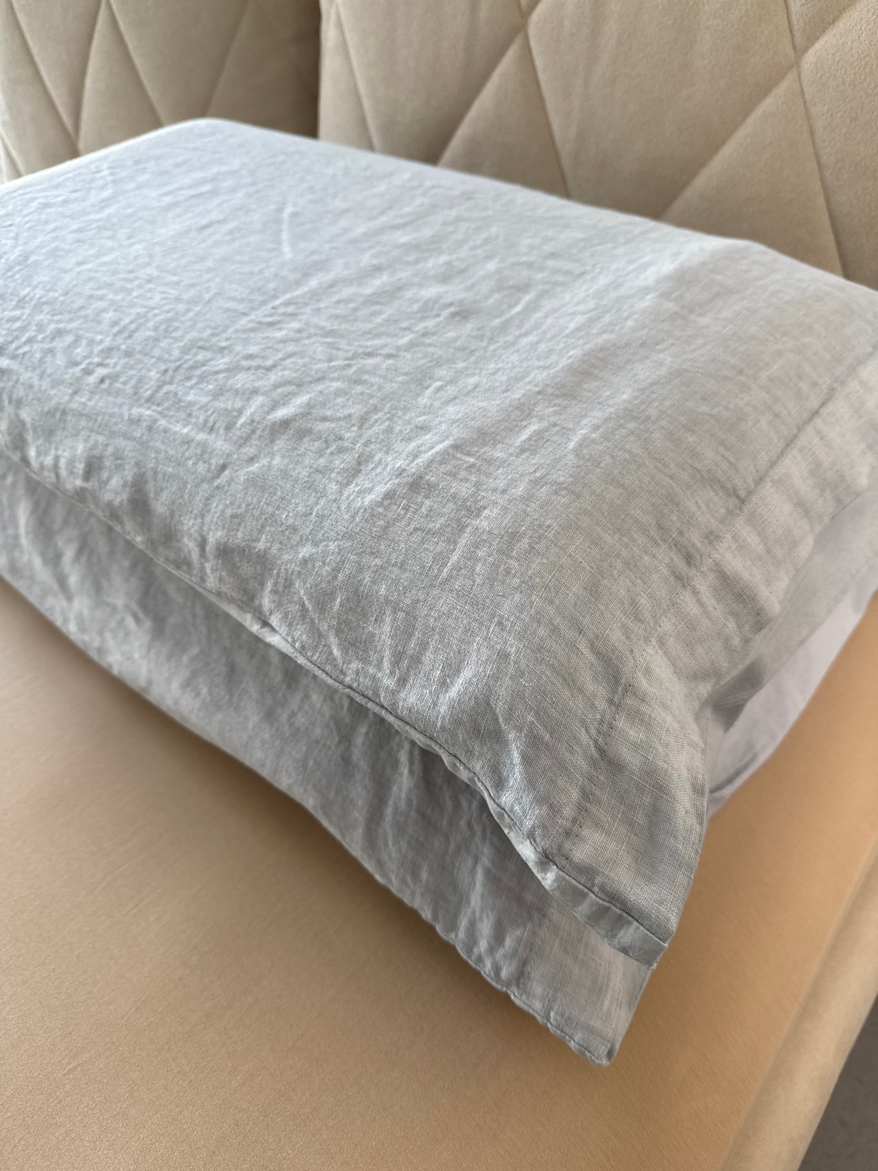 Raffinato, elegante e pratico è il nostro lenzuolo in cotone stonewashed Elegance con bordo in puro Lino, federe un lato puro Lino ed un lato cotone stonewashed.
